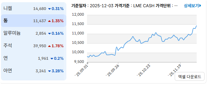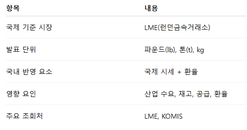 산업용 금속 시세는 국제 거래량·재고·수요에 따라 구조적으로 변동됩니다.