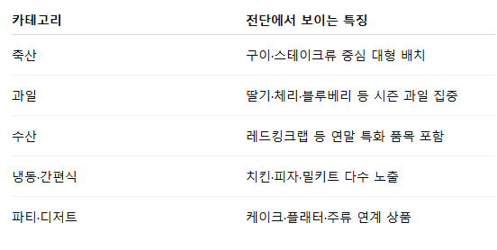 즉, 이번 전단은 일상 장보기보다는 연말 한시적 소비 목적이 분명한 구성입니다.