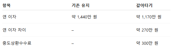 그래서 갈아타기 전에는 반드시 내 대출 기준으로 직접 계산해야 합니다.