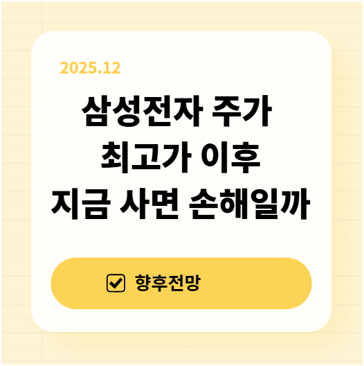최근 삼성전자 주가가 사상 최고가를 경신하면서 투자자들의 관심이 다시 집중되고 있습니다. “삼성전자 사서 손해 본 투자자는 없다”는 말이 다시 회자되지만, 주가가 최고가를 찍은 이후에는 질문이 달라집니다. 지금 이 시점에서 중요한 것은 전망이 아니라 지금 들어가면 손해가 될 수 있는 구간인지 판단하는 것입니다.