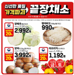 이번 전단 기간(11/20~11/26)은 겨울 시즌 진입과 김장철 초입이 겹치는 주간이라 품목 구성 변화가 큽니다.