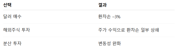 반면 해외주식은 환율과 주가가 함께 작용해 손익 구조가 더 유연합니다. 지금 중요한 것은 사야 하느냐가 아니라, 환율 리스크를 어떤 구조로 감당할 것인가입니다.