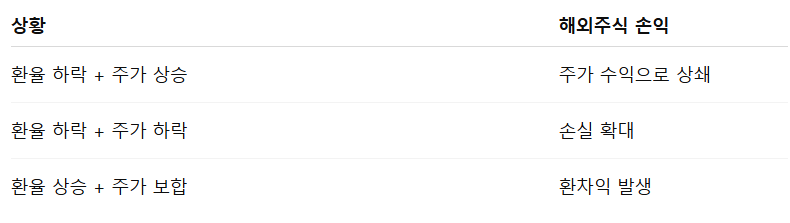 해외주식은 달러 자산이지만, 환율과 주가가 동시에 손익에 작용합니다. 이 점이 달러 단독 매수와 가장 큰 차이입니다.