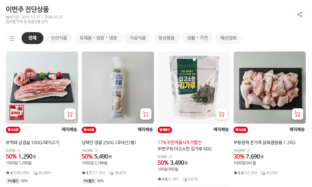 2. 신년 홈파티의 꽃: 육류 및 수산물 '반값' 공세