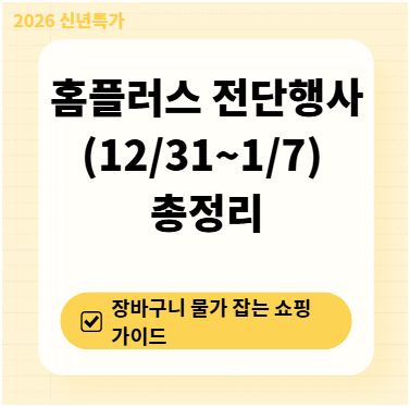 이번 홈플러스 전단행사(2025.12.31 ~ 2026.01.07)는 '새해 첫 세일'이라는 타이틀에 걸맞게 파격적인 할인 품목이 가득합니다. 떡국 재료부터 홈파티용 고기, 생필품 1+1까지! 제가 직접 전단을 분석하여 핵심만 콕콕 집어 정리해 드립니다.