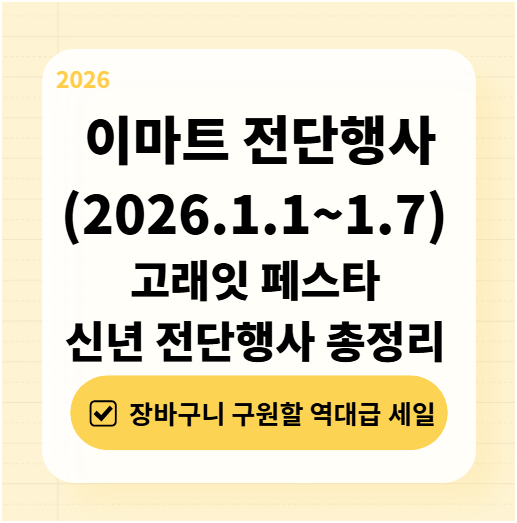 이번 2026년 이마트 고래잇 페스타는 연초부터 가계에 큰 힘이 될 수 있는 알찬 구성으로 준비되었습니다. 특히 고기와 계란처럼 매일 먹는 식재료를 반값 수준으로 구매할 수 있다는 점이 가장 큰 매력입니다.