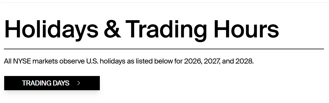 [ 📌 뉴욕증권거래소(NYSE) 공식 홈페이지 : 거래 시간 가이드 ]