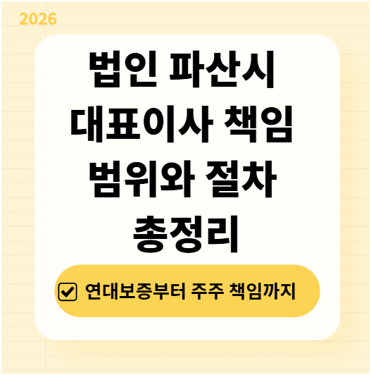 - 연대보증 채무: 가장 주의해야 할 부분입니다. 금융권 대출이나 계약 시 대표이사가 개인 자격으로 연대보증을 섰다면, 법인이 파산하더라도 그 책임은 사라지지 않고 대표 개인에게 남습니다.