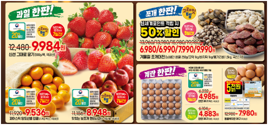 신선식품은 지점별 차이가 가장 크므로 방문 지점 전단 재확인 필요.